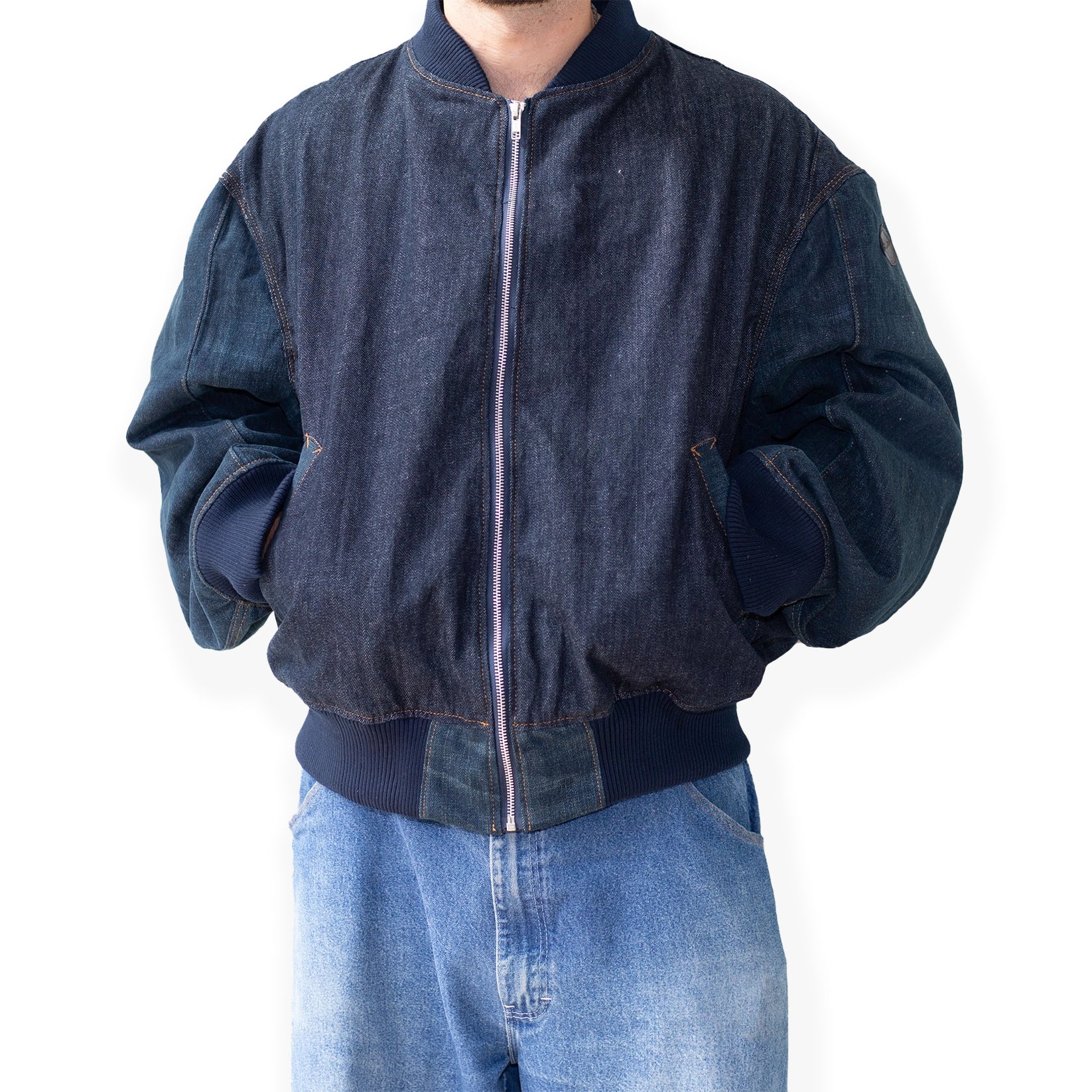 Bomber jacket made from vintage jeans. Mid-weight with welt pockets and relaxed fit. This piece can be made to measure to your specification. Please enquire using contact form.