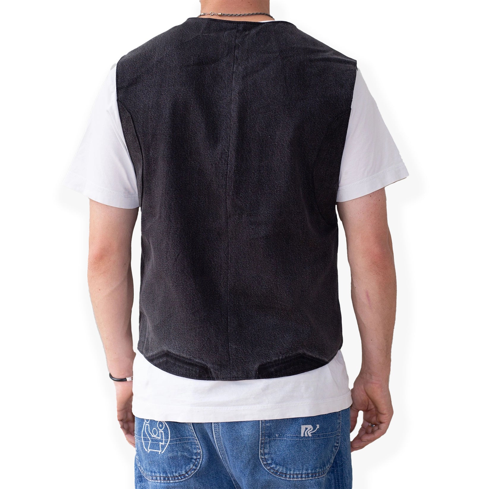 Boxy vest made from vintage denim. Lined in lightweight denim. Can be made to your measurements and specification, please use the contact form to enquire.